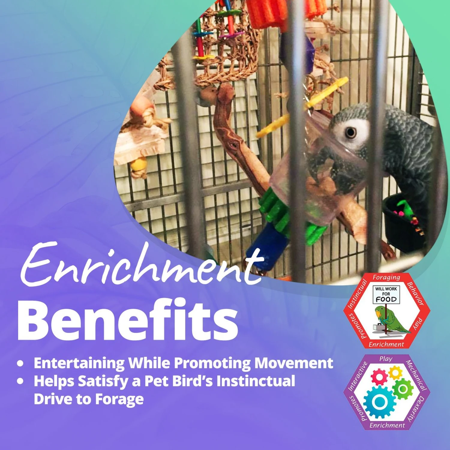 - Helps satisfy your bird’s instinctual urge to forage while promoting exercise.