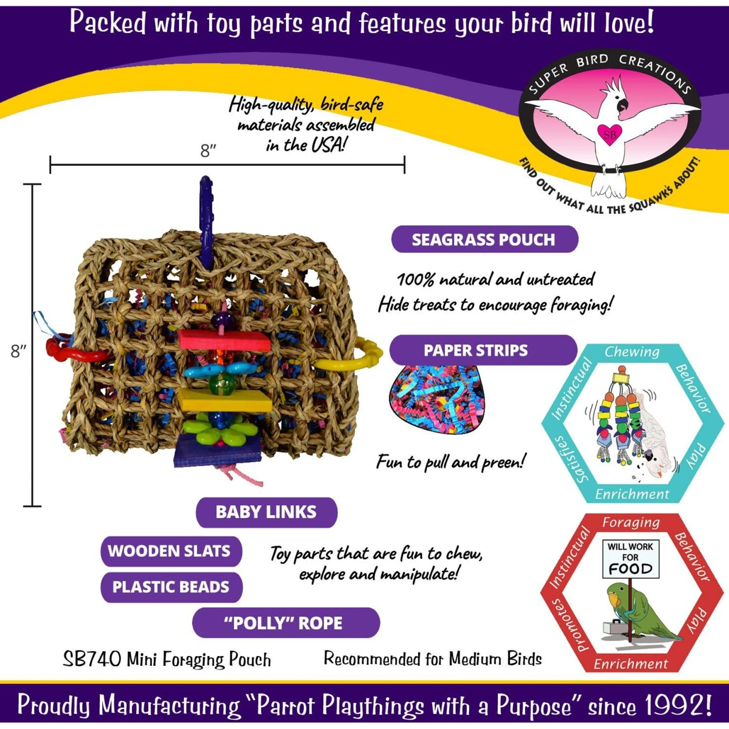 Be the first to review “Super Bird Creations Mini Foraging Pouch Bird Toy” Cancel reply