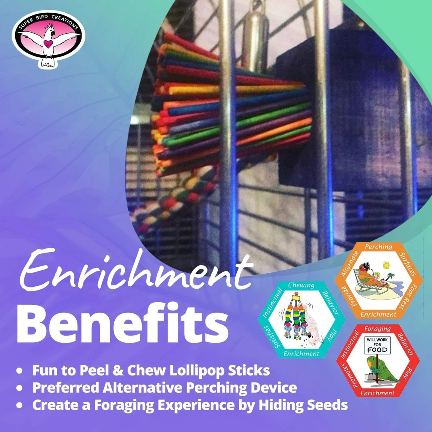 - Stuff your bird’s favorite seeds into the lollipop sticks for a fun foraging game.