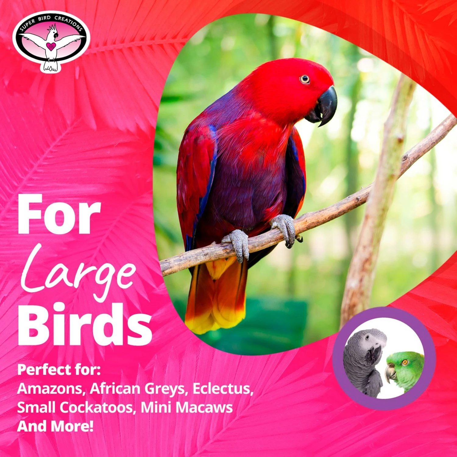- Perfect for Amazons, African greys, eclectus, small cockatoos, mini macaws and other large-sized pet birds.