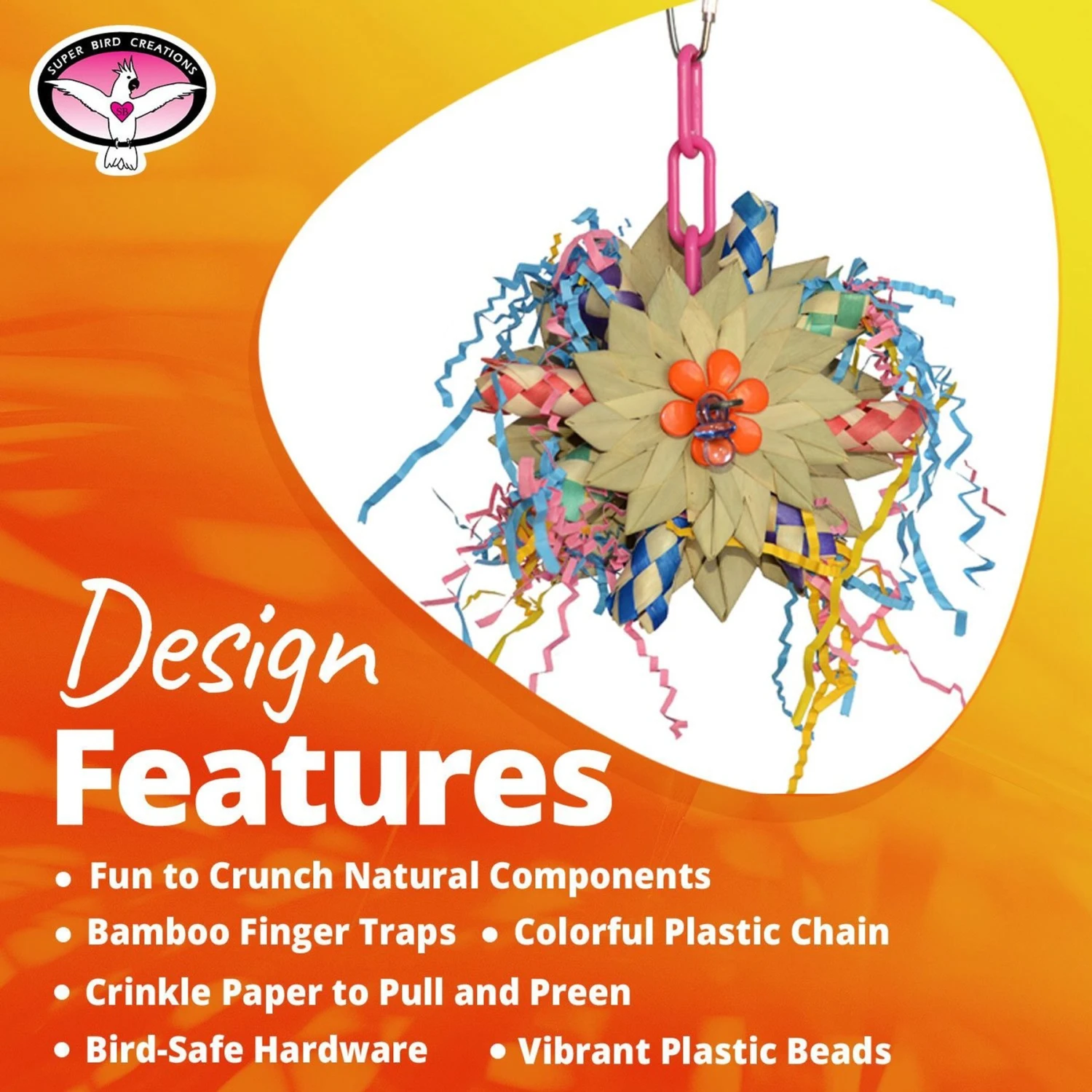 - Features crunchy palm leaf flowers, finger traps and colorful crinkle shred.
