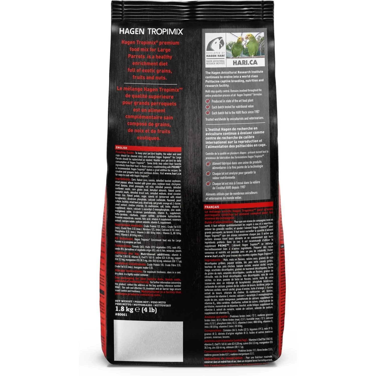 - This wholesome formula is full of grains, fruits, nuts, legumes and Tropican sticks for added enrichment.