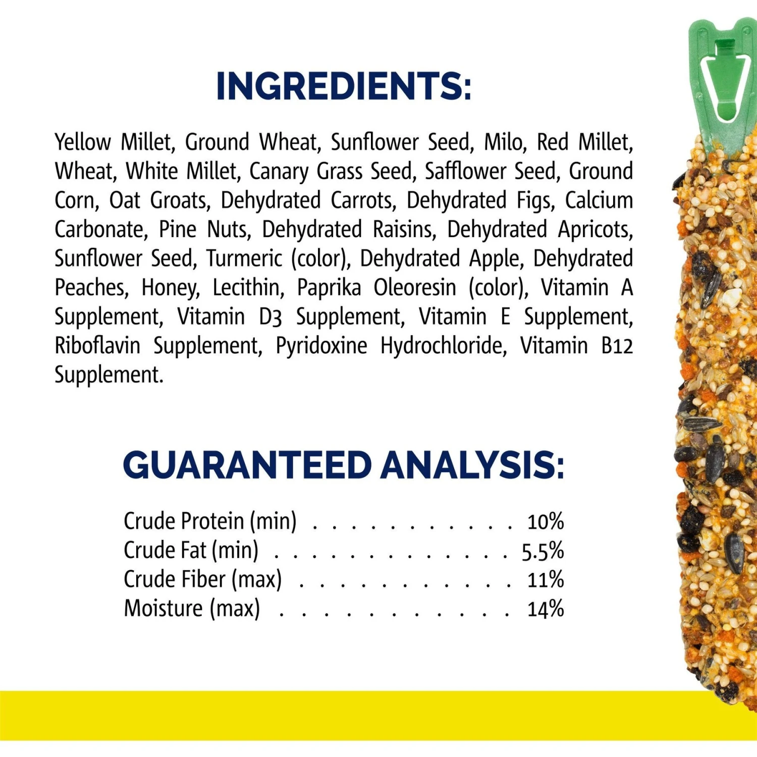 - Quality ingredients include millet seed, sunflower seed, peach and apricot.