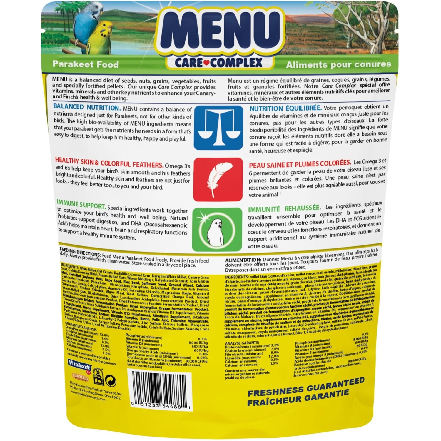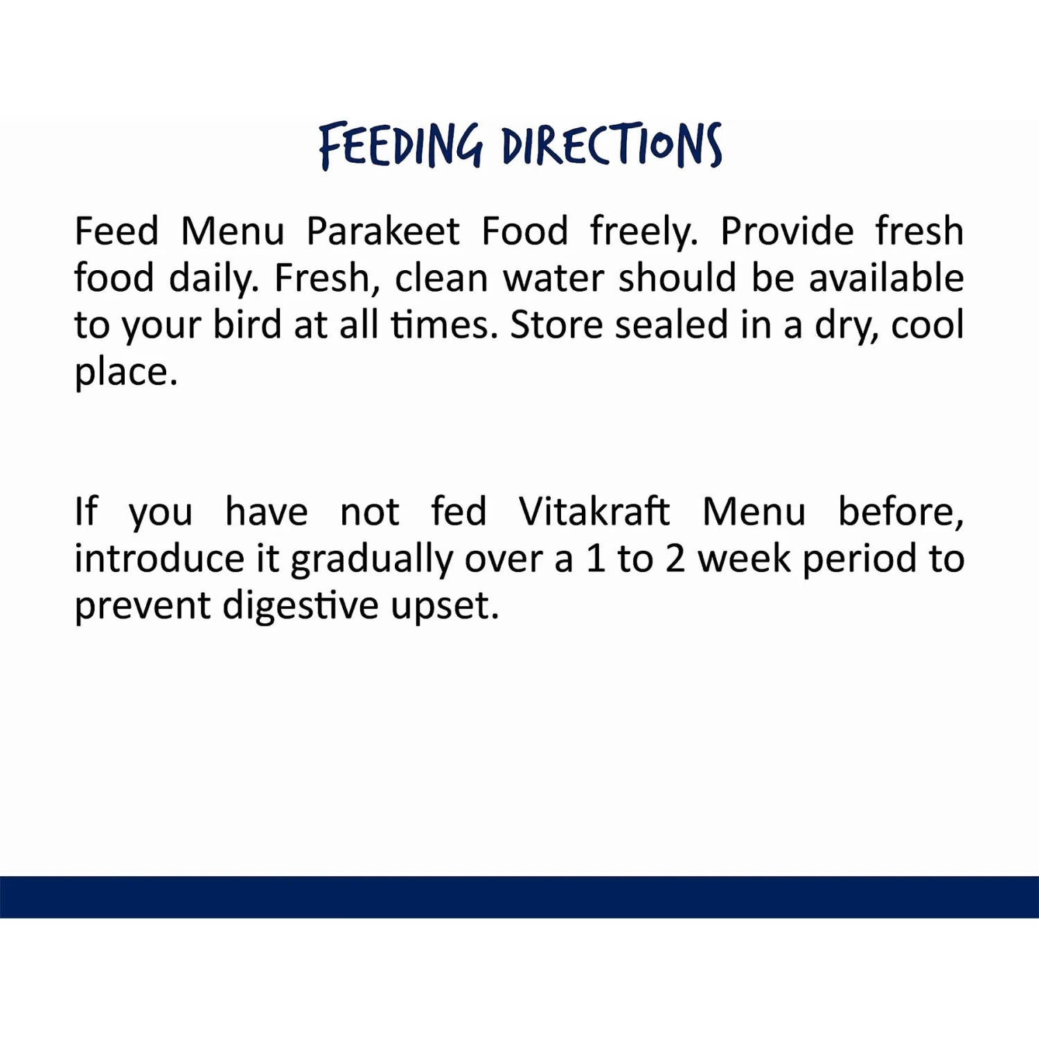 - Food is designed specifically for parakeets.