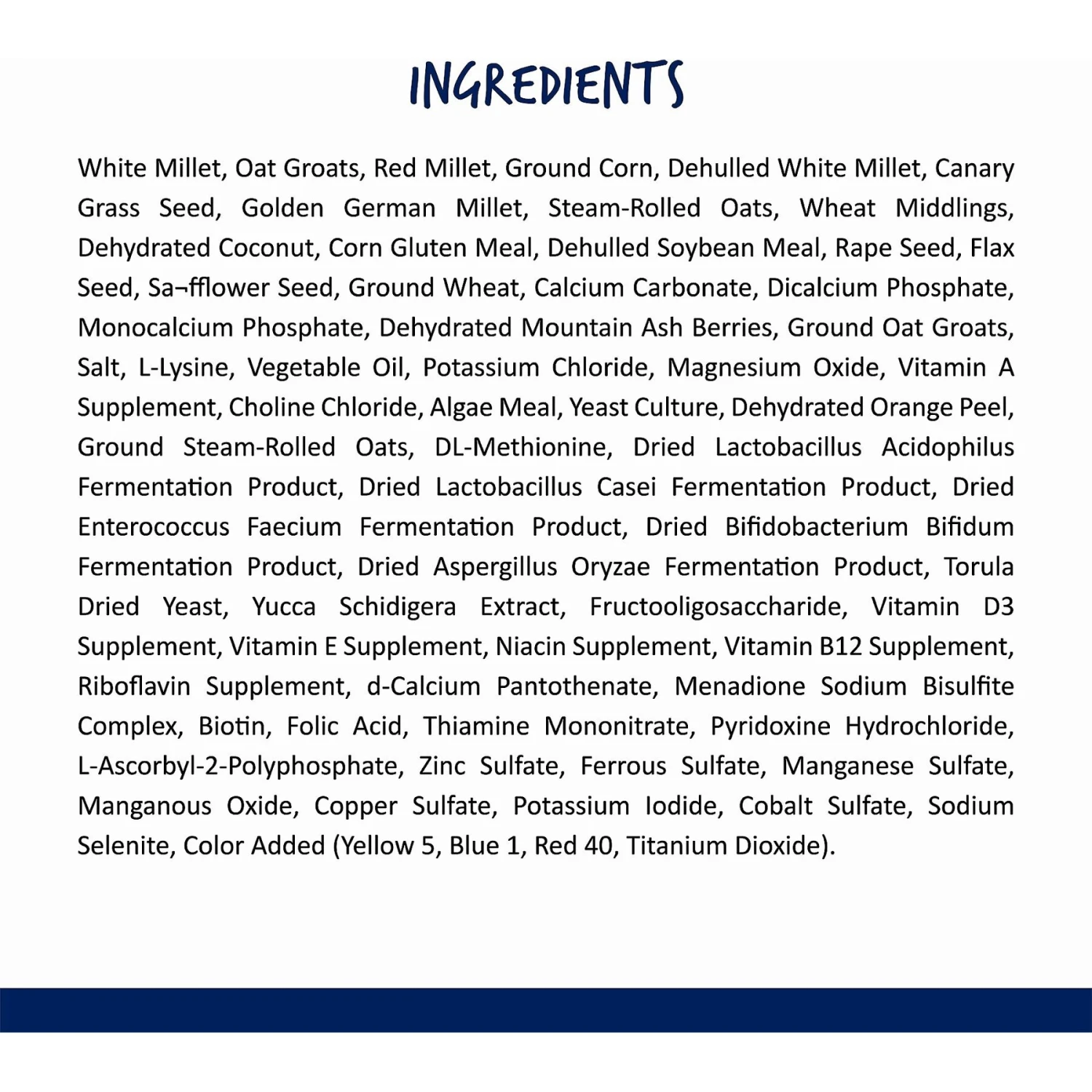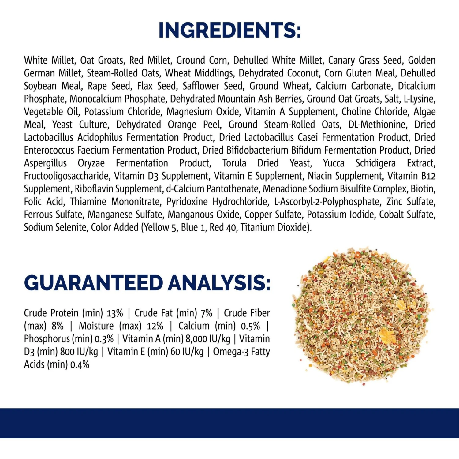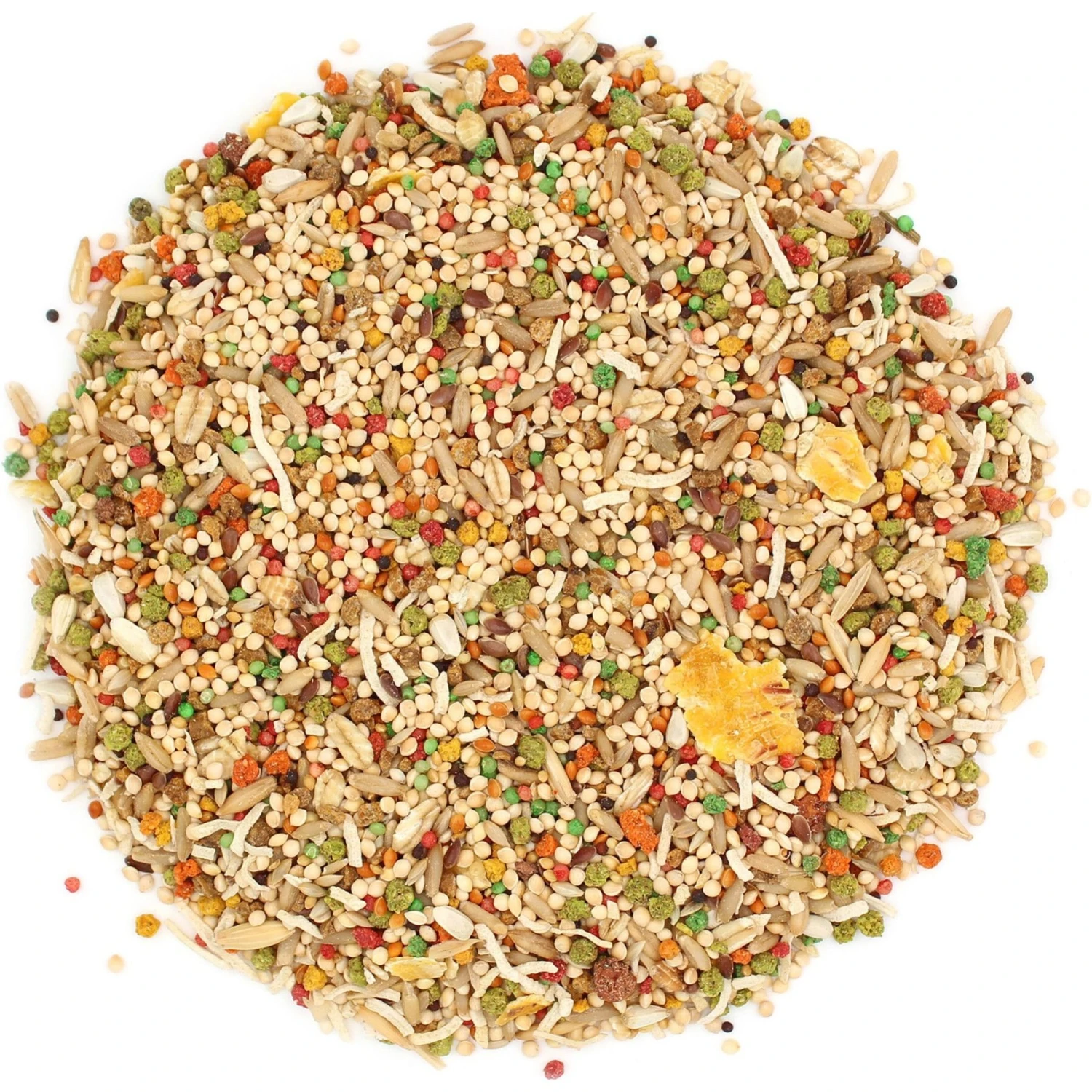 - Includes tasty bits your parakeet would find in the wild, like safflower seed, millet for birds, oats, mountain ash berry, coconut and orange.