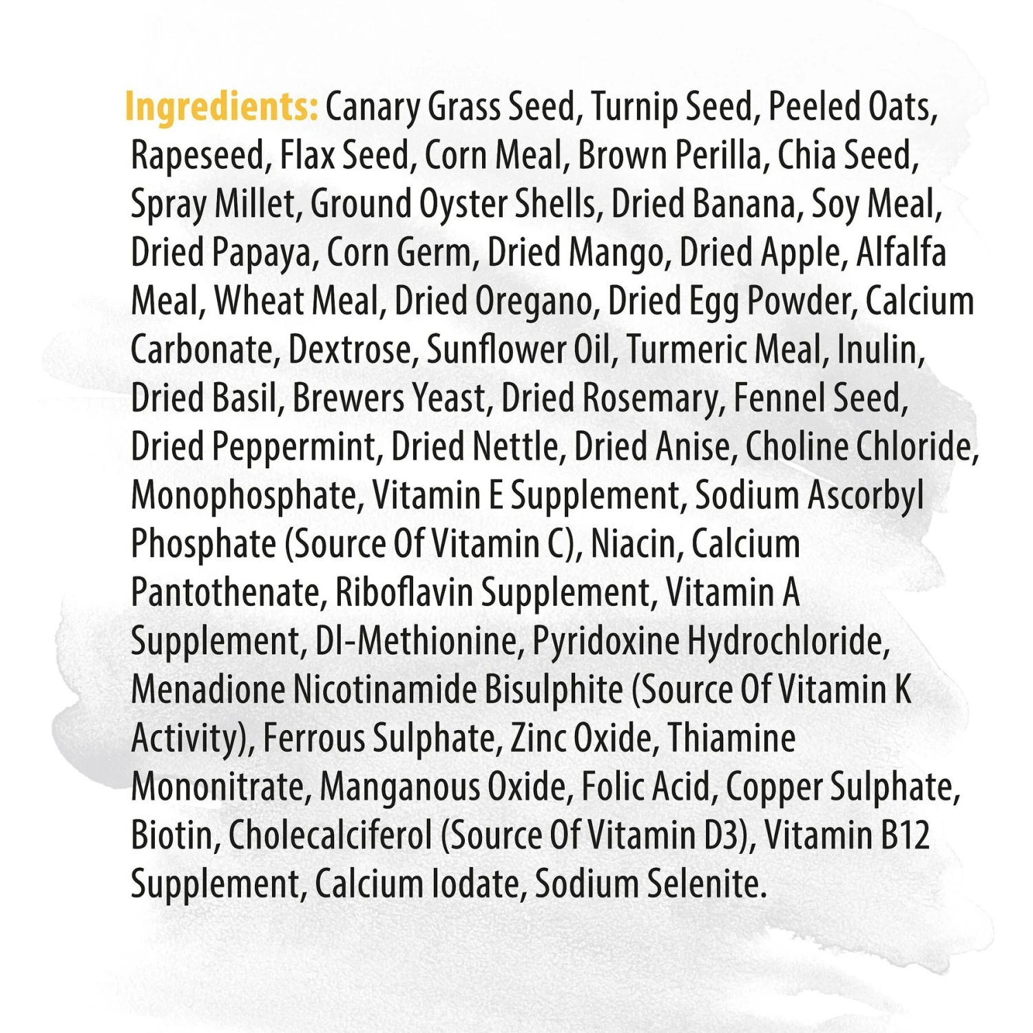 - Protein-dense recipe with linseed promotes dazzling feathers and helps facilitate moulting.