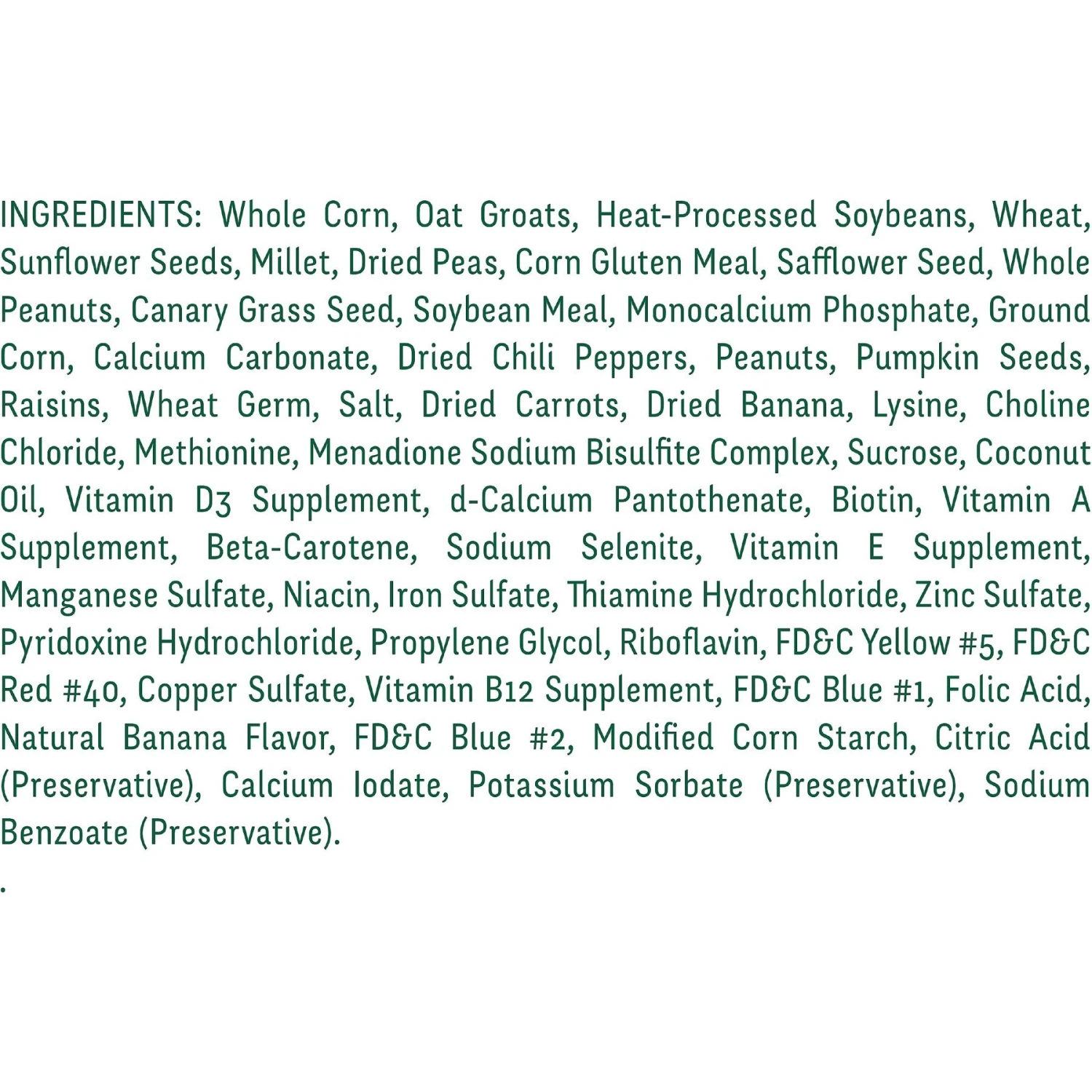 - Includes a diverse blend of nutrients that replicates diets found in natural habitats—like millet, oat groats, safflower seeds, sunflower seeds, cracked corn, peanuts and more.