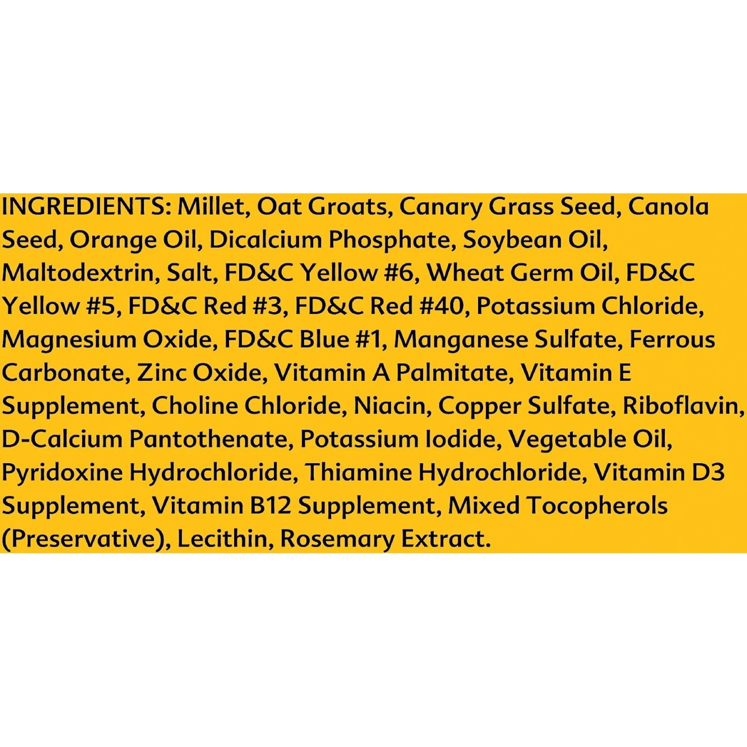 - Formulated with red and white millet, canary grass seed, and select grains.