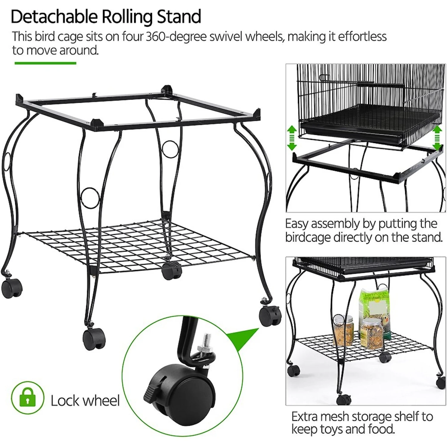 - Features a detachable rolling stand that allows for your bird to explore new parts of your home.