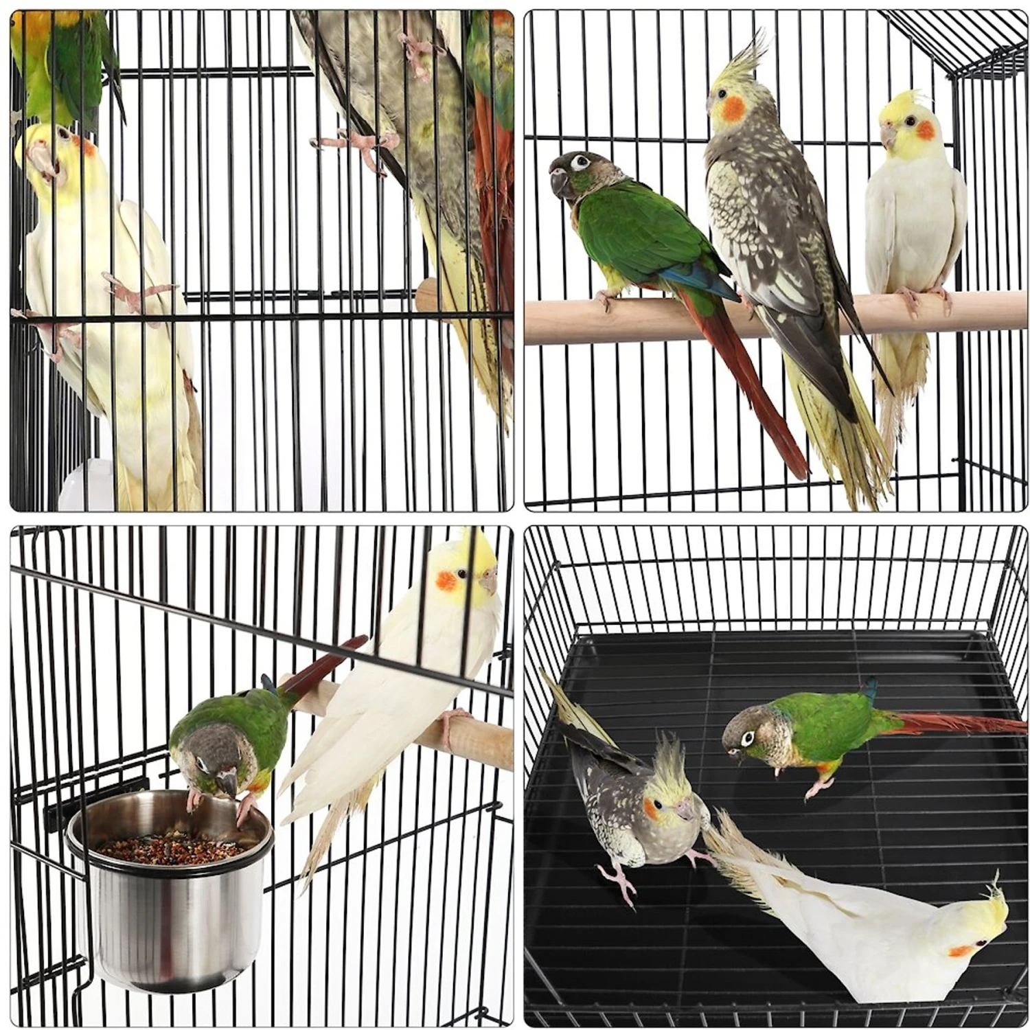 - Storage shelf attached to the cage offers extra space to keep food, cleaning tools, toys or treats.