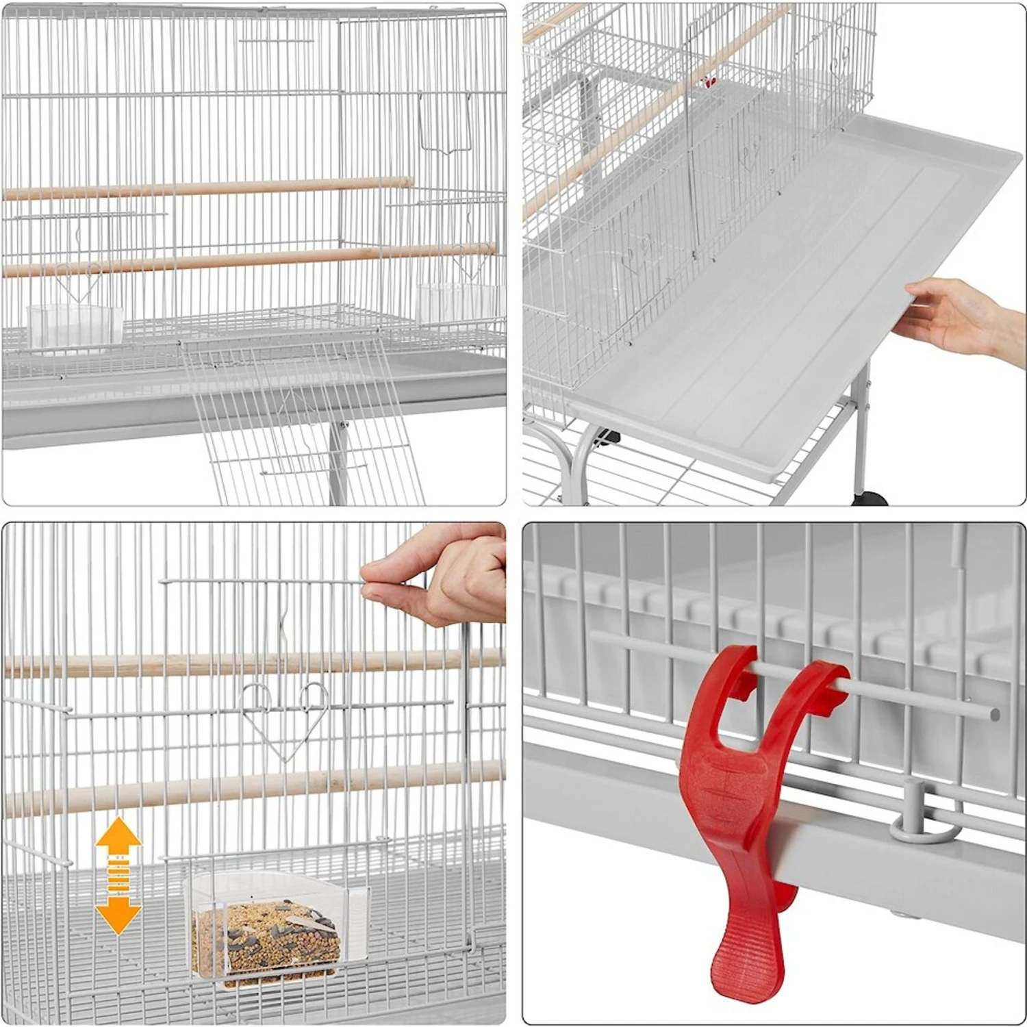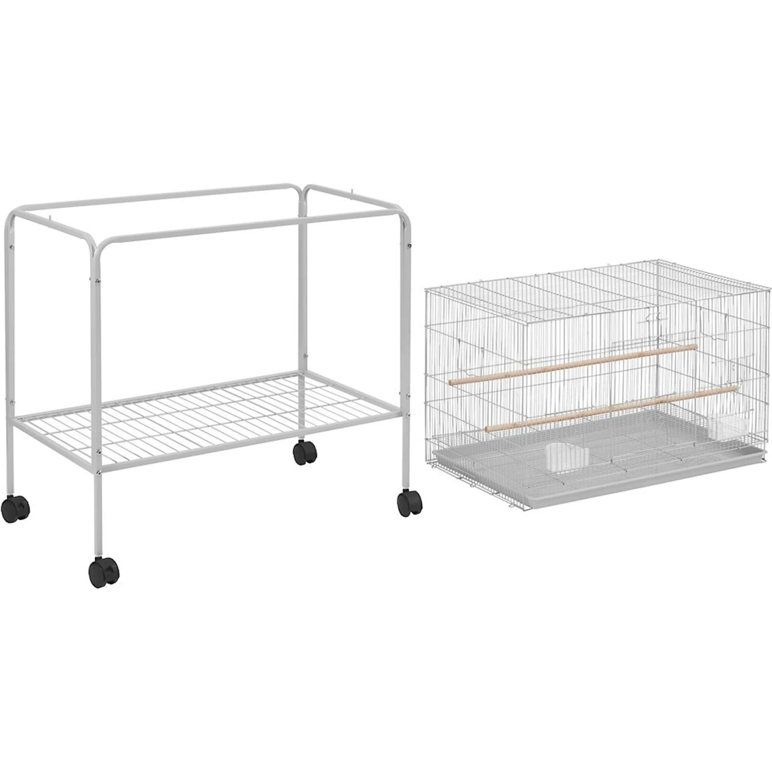 - Rolling casters and safety wheel brakes let you easily move the cage around the house or even outside on nice days!