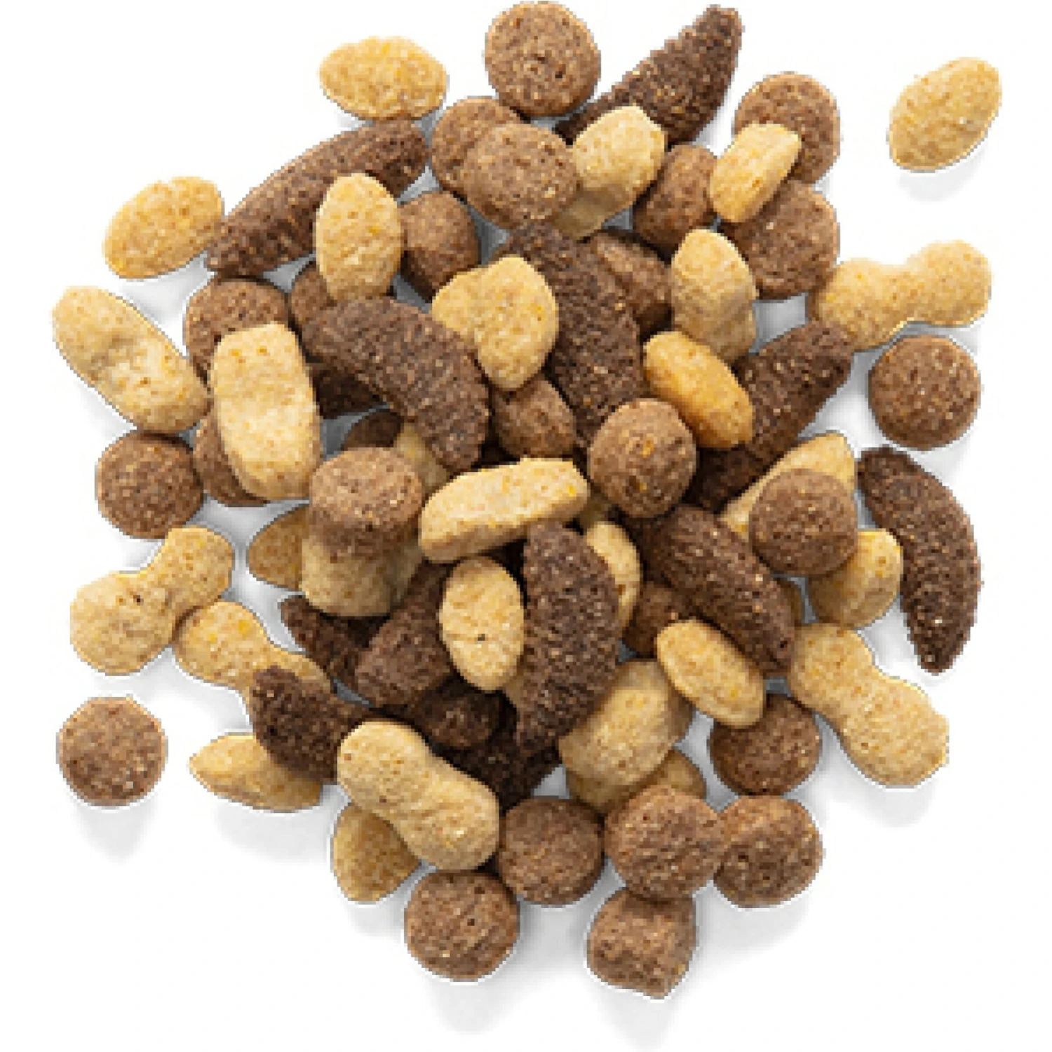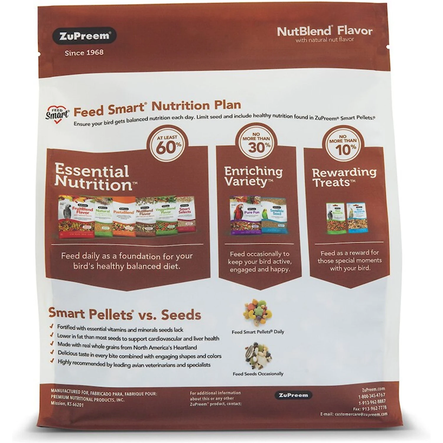 - NutBlend contains pellets with different nut colors and shapes for more variety without sacrificing nutrition.